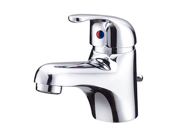 Hot & Cold Single Hole Lavatory Faucet, w/ Manual Brass Pop-up