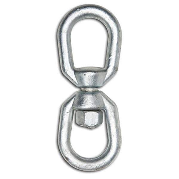 Eye-eye chain swivels are high strength connection links used in zero degree straight/vertical lifting and rigging applications. They have large eye openings and are forged from 1045 Carbon Steel and galvanized for corrosion resistance.