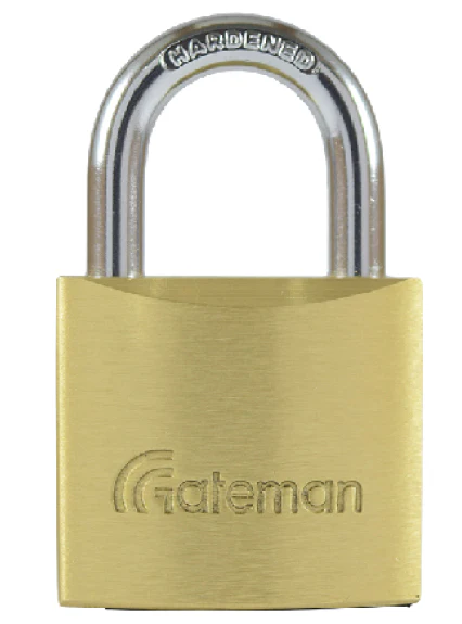 The Gateman Padlock Brass 40mm Hard Steel Shackle a padlock with a hardened steel body and a brass shackle and it measures 40mm in width. The padlock is designed to provide security for a variety of applications, such as gates, doors, and cabinets. It is weather resistant and can be used indoors or outdoors.
